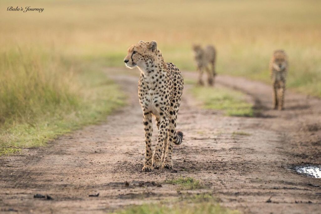 உள்ளே சென்ற சிறிது நேரத்திலேயே, நஷிப்பாய் என்ற தாய் சீட்டாவும் அதன் வளர்ந்த பசங்க இரண்டு பேரும் நடந்து கொண்டிருப்பது தெரிந்து , அவை செல்லும் திசையில் அவற்றிற்கு முன்னராக சென்று காரை வெகு தொலைவில் நிறுத்தி விட்டு அவற்றின் வருகைக்காகக் காத்திருந்தோம்.
