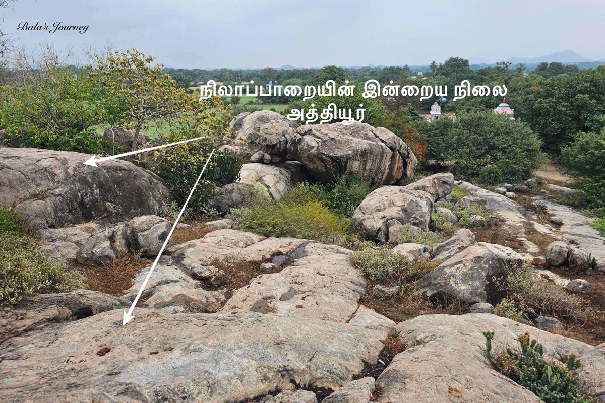 இந்தச் சுனையிலிருந்து சற்று மேல் நோக்கி நடந்தால் குன்றின் உச்சிப் பகுதி வருகிறது. அங்கு அறிவர்களின் ( ஆசீவகர்களின்) டிப்பிக்கல் நிலாப்பாறை உள்ளது. முக்கல் ஆசான் நல்வெள்ளையார் அமர்ந்து, படுத்து அவதானித்த இடத்தில் இன்று கார்த்திகை தீபம் ஏற்றப்படுகிறது. அதனால்தானோ என்னவோ அந்த இடம் கொஞ்சம் சுத்தமாகவே இருக்கிறது. அந்த சமயத்தில் ஏற்படும் விபத்துகளைத் தடுக்க அந்தப் பாறையைச் சுற்றி இரும்புச் சட்டங்களால் வேலி அமைத்துள்ளனர்.