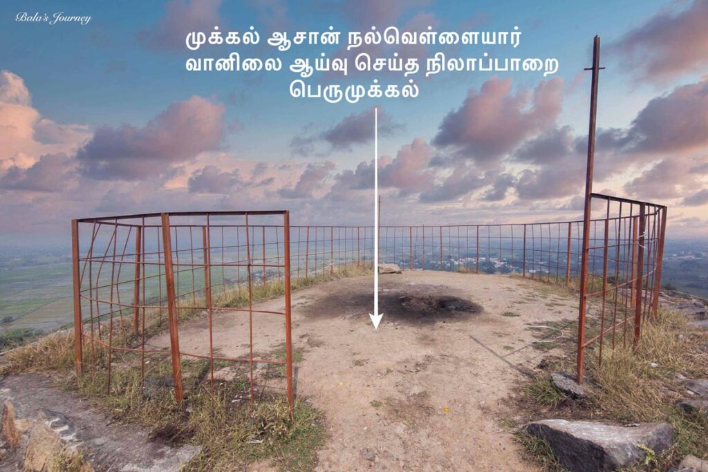 முக்கல் ஆசான்தான் அங்கும் சென்று , அங்குள்ள நிலாப்பாறையில் இருந்து வானிலை ஆய்வு ஏதோ செய்திருக்க வேண்டும். அந்த நிலாப்பாறையில் இன்று எங்குமே கால் வைக்க முடியாத அளவிற்கு பொதுக் கழிப்பறையாக ஆக்கி வைத்துள்ளனர் உள்ளூர் மக்கள். வேதனையின் உச்சம். அந்தப் பாறையிலிருந்து ஒரு பத்தடி தூரத்தில் முக்கல் ஆசான் என்னை விட வேதனையுடன் வீற்றிருக்கிறார்.
