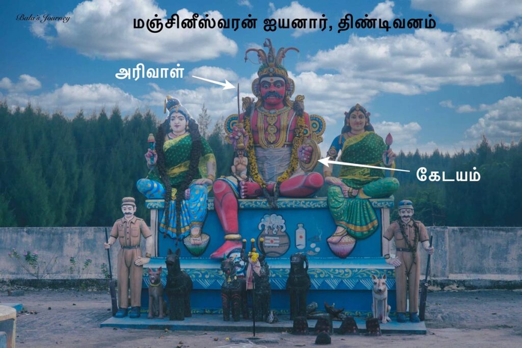 இங்கிருந்து ஒரு 10 கி.மீ தொலைவில் திண்டிவனத்தின் எல்லையில் “மஞ்சினீஸ்வரன் ஐயனாரப்பன்” திருக்கோயில் ஒன்றுள்ளது. அங்குள்ள ஐயனாரும் பெருமுக்கலில் உள்ளது போலவே ஒரு கையில் அரிவாளும், இன்னொரு கையில் கேடயமுமாக இரு பெண் தெய்வங்களுடன் வீற்றிருக்கிறார்.